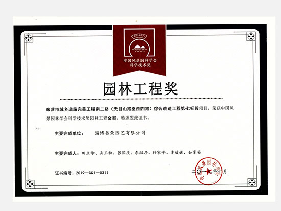 2019年中國(guó)風(fēng)景園林學(xué)會(huì)科技獎(jiǎng)園林工程金獎(jiǎng)