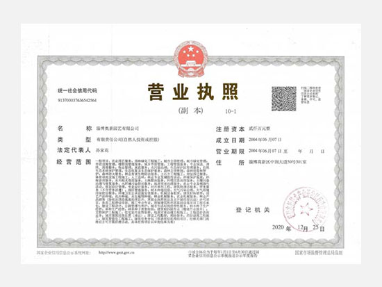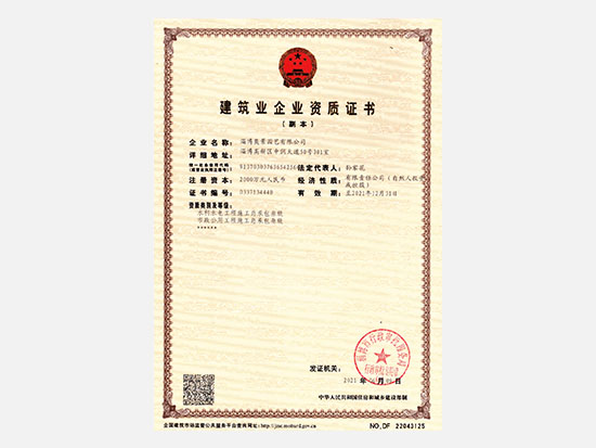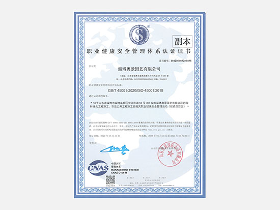 質(zhì)量管理體系認(rèn)證證書(園林綠化)